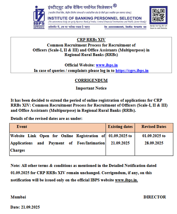 IBPS RRB XIV Recruitment 2025: Notification Out for 13300+ Posts | Last Date: 28th September 2025 [DATE EXTENDED]